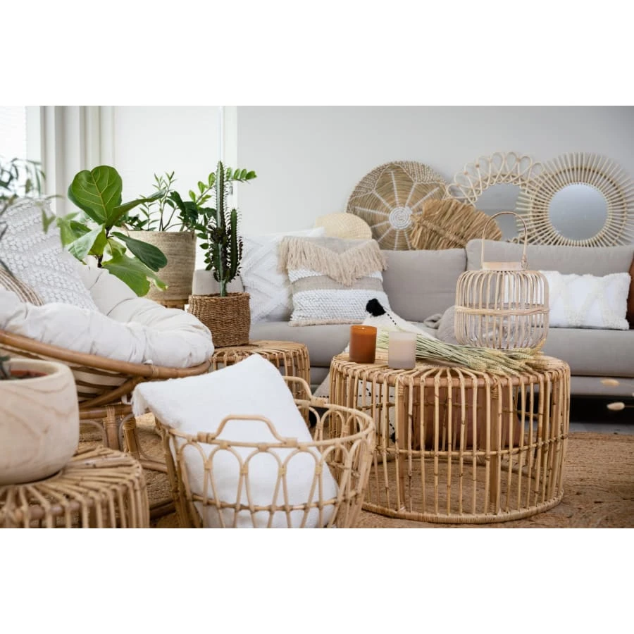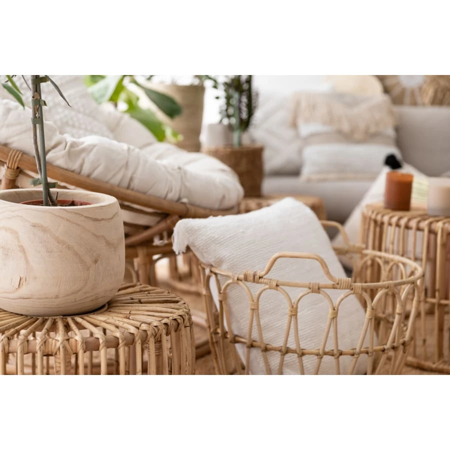 The rattan is ecological natural material and its characteristics include color variations and darker areas. Variations in color, unevenness and traces of handwork make each rattan product unique. Suitable outdoors only for covered balconies and terraces. Make sure that the rattan furniture does not get directly into the scorching sun. Water and sun cause cracking, graying of the surface and decay in rattan. For the winter, it is recommended to store in a dry interior.