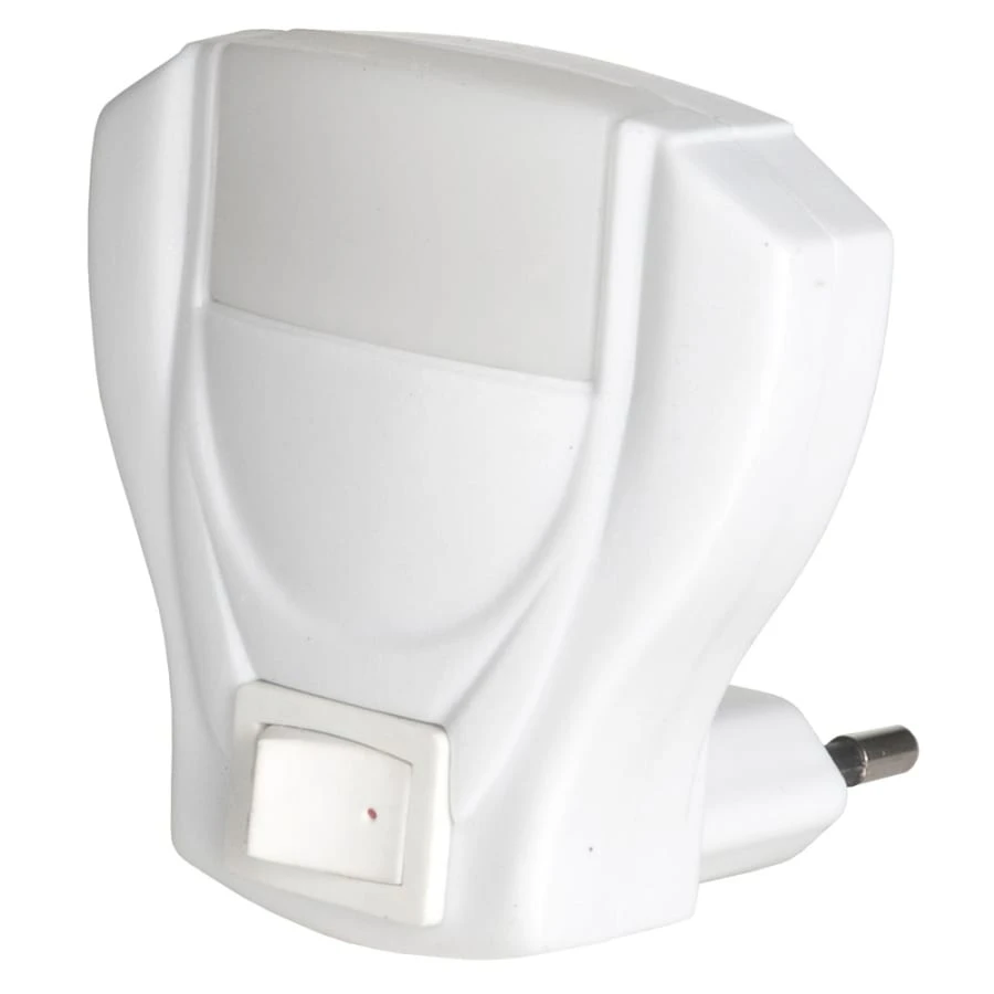 Energy-efficient and low-power, long-lasting LED (not replaceable). The color of the LED is warm white. The compact night light is unnoticeable. On/Off switch.