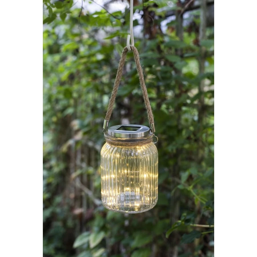 A nice glass jar with a solar-powered LED inside, 15 pcs., warm white.