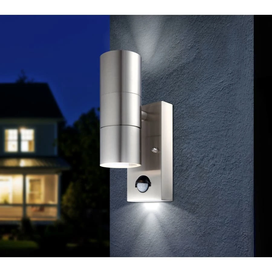 This outdoor lamp model belongs to the Style series. This stylish, stainless steel wall lamp, IP44 protection, is perfectly suitable for outdoor use. The modern 16.5 cm outdoor lamp includes a built-in motion sensor (6 m / 100 °). With the two included, replaceable LED bulbs, you get 840 lumens of light, a pleasant 3000 K with a warm white color tone, and it illuminates both up and down.