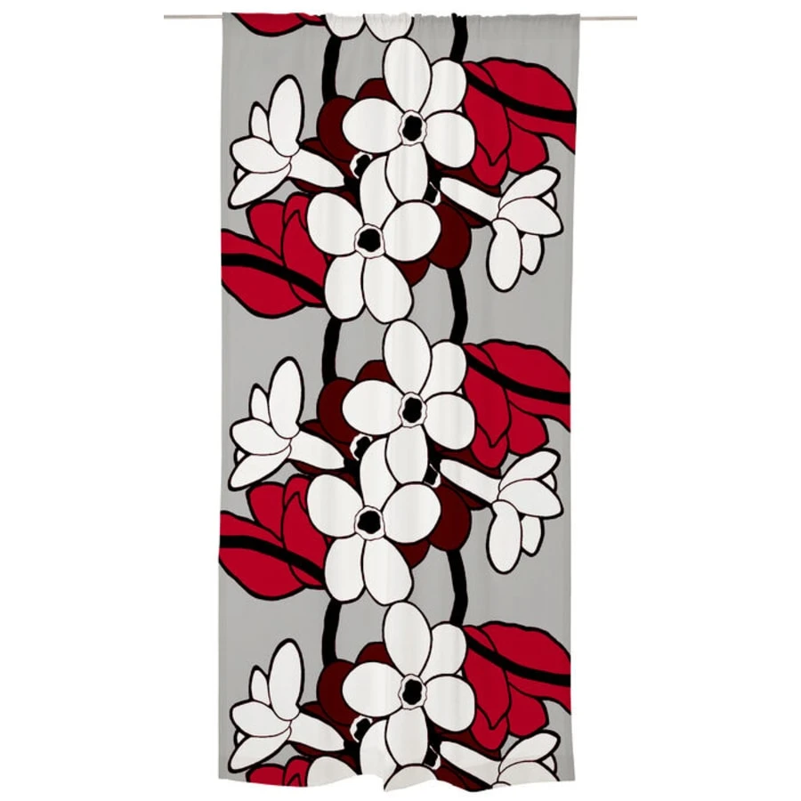 Yksittäispakattu valmisverho, rypytysnauha ja tankokuja yläreunassa.Materiaali: 83 % puuvilla, 17 % polyesteriPesuohje: 30 asteen hienopesu. Ei linkousta. Kuivapesu P. Rumpukuivaus kielletty. Ei valkaisua. 1 pisteen silitys.