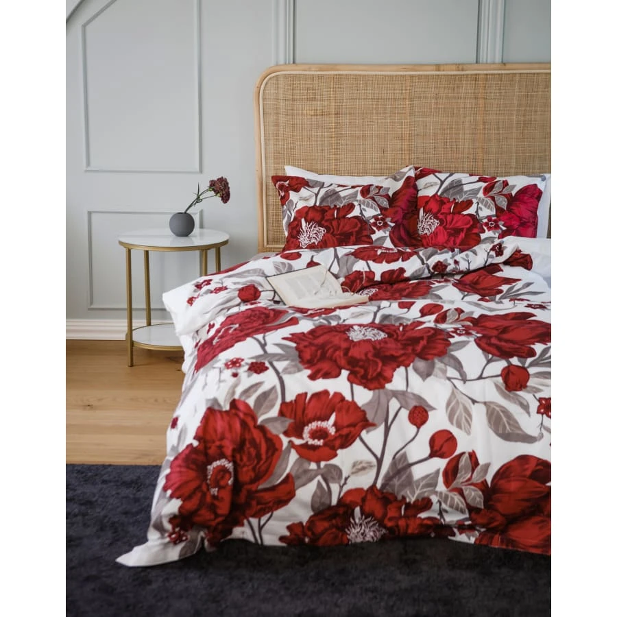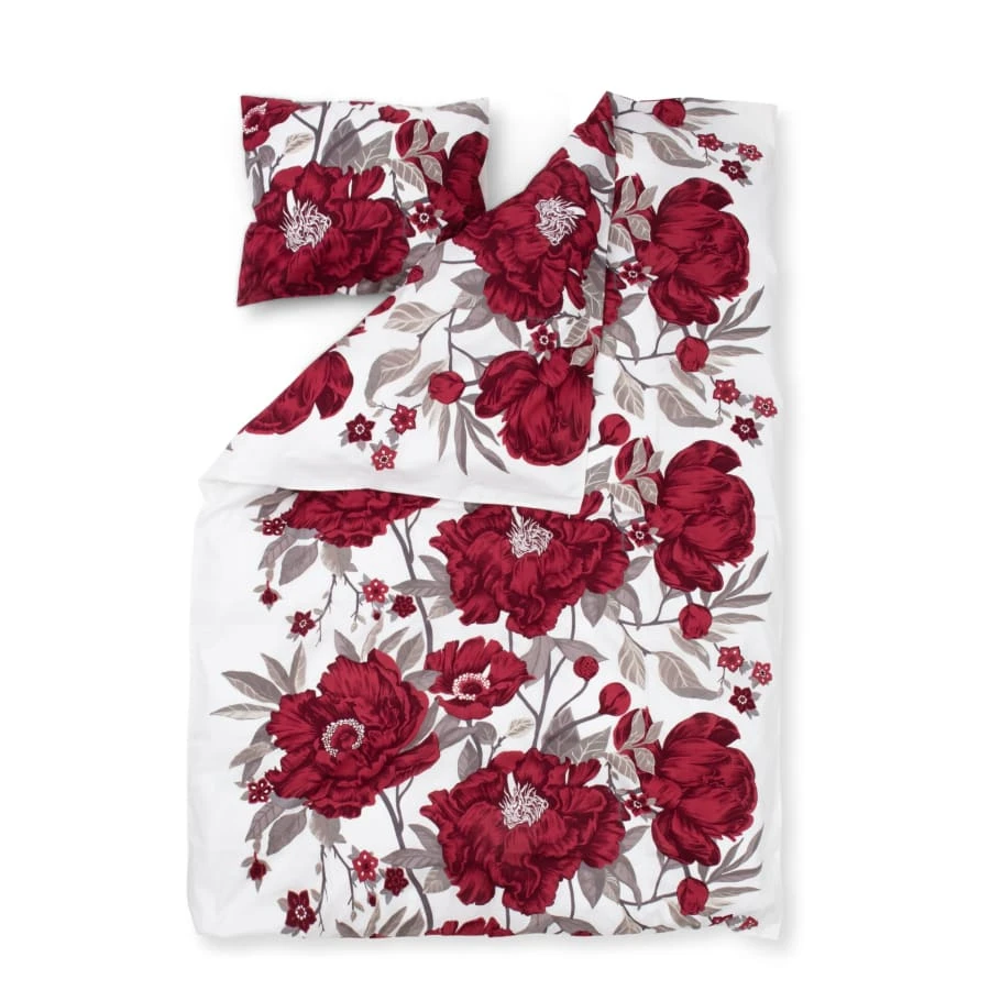 Kärlekshistoriens mönster visar vackra pioner och deras blomning, vilket är ett kort men underbart ögonblick varje år. Till designerns förtret är pionerna i sin glans i bara ungefär en vecka, så genom att föreviga dem i mönster har designern gjort dem till en långvarig glädje. Lakanset, inkluderar ett 50x60cm örngott. Material: 100% bomull. Tvättråd: 60°C skonsam tvätt, ingen kemtvätt, ingen blekmedel, torktumling låg, centrifugering tillåten. Strykning: 3.